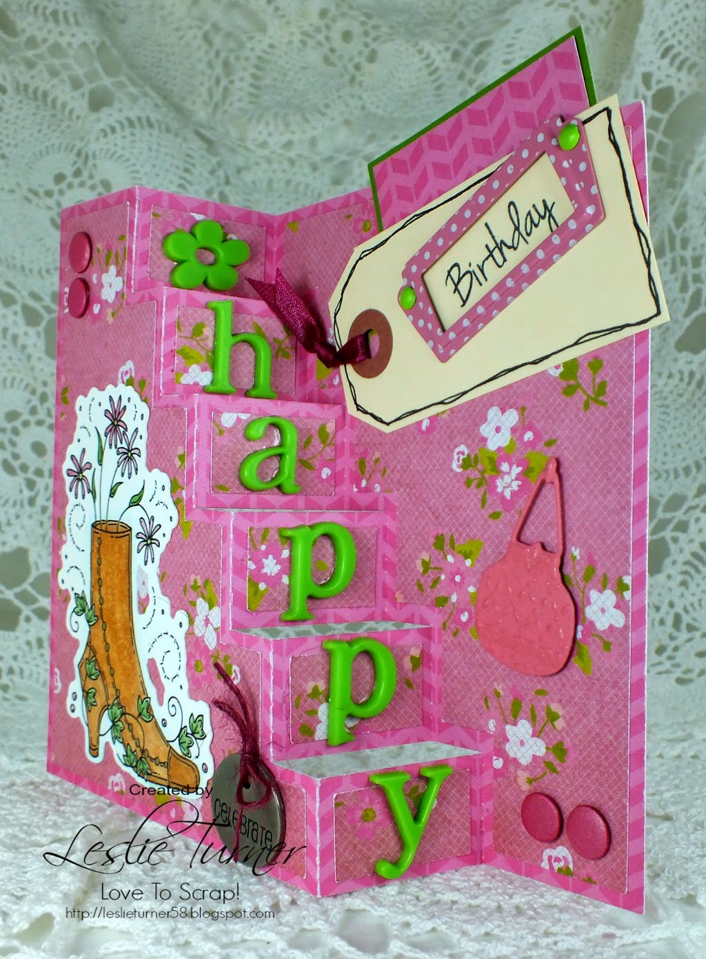 I kept the inside fairly simple a birthday sentiment stamped on pink cardstock layered on metallic pearl cardstock.